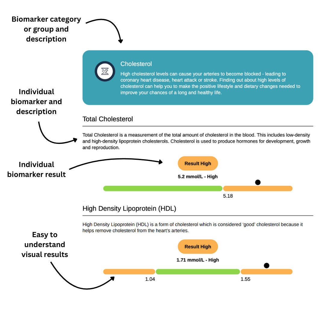 Yes, we design your result report to be easy to understand. We include graphical images as well as reference ranges and descriptions. Remember, your report will include feedback from one of our doctors who'll highlight any concerns.